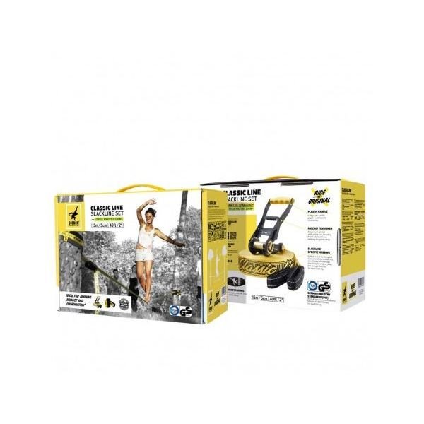 CLASSICLINE TREEWEAR 15M lenta ar papildus aizsargu spriegotājam un diviem koku aizsargiem. Populārākā no Gibbon lentām, kas paredzēta, lai mācītos noturēt līdzsvaru, uzlabotu saišu stiprību, kā arī izpildīt trikus. Gibbon slackline būs ļoti labs papildinājums gan privātās ballītēs, gan publiskos pasākumos, kur varēs sacensties, kurš tālāk noies vai izpildīs labāko triku. Ļoti viegli uzstādāma. Atbilst DIN 79400 (German Industrial Standart), TUV sertificēts.
